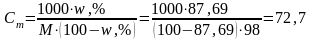 Моляльність отриманого розчину обчислимо за рівнянням (1.7)