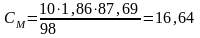 Розв’язування. Розрахуємо молярну концентрацію Н2SO4 за рівнянням (1.12)