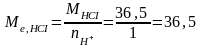 Молярну масу еквівалента НСІ визначимо за рівнянням