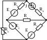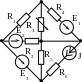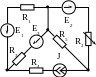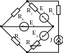 7. Определить методом эквивалентного генератора ток в резисторе, отмеченном на схеме стрелочкой. Построить графики зависимости тока и мощности, выделенной в нем, при изменении его сопротивления от нуля до 3RЭ. Определить значение сопротивления отмеченного резистора, при котором в нем выделяется максимальная мощность.