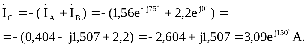 Ток линейного провода «Сс» и фазы «с» приемника определяем с помощью первого закона Кирхгофа. Для схемы без нулевого провода: