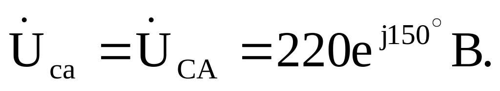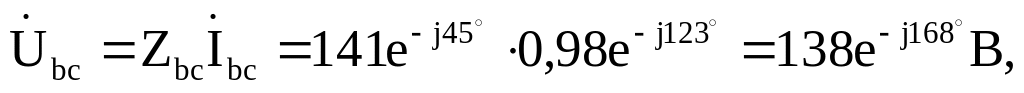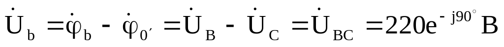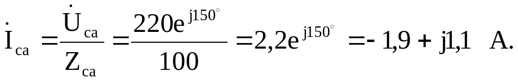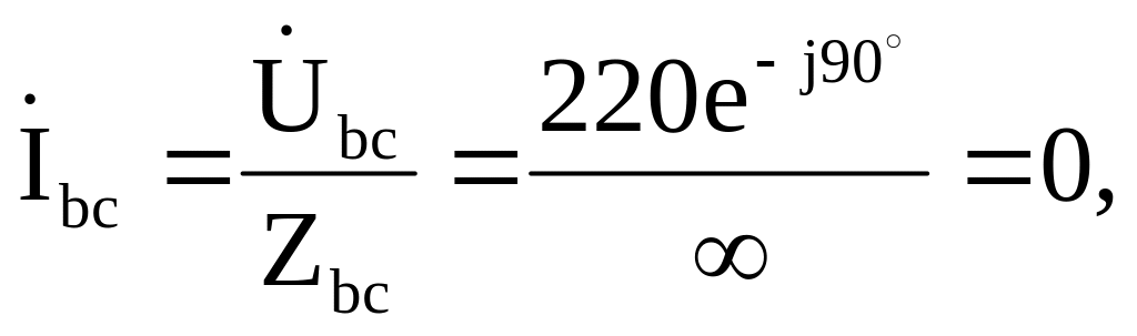 Zаb= jXL=j100 Ом, Zca = R = 100 Ом; так как в фазе вс произошел обрыв нагрузки, то Zbc =∞.