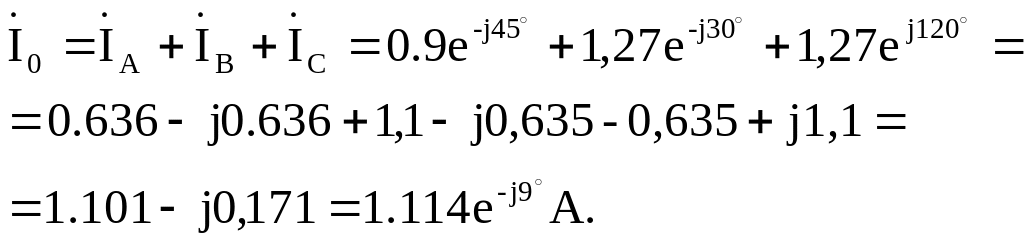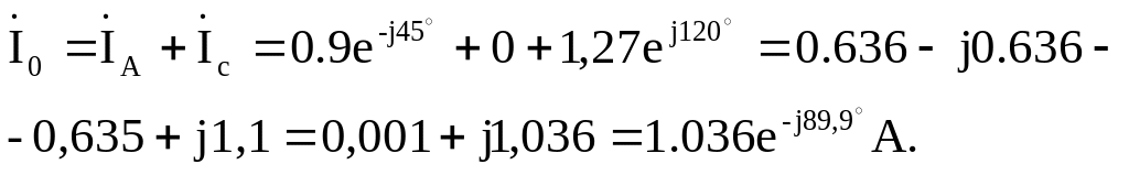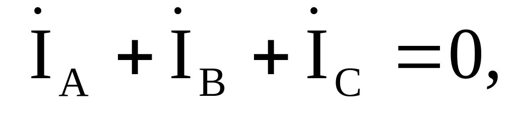 Ток в нулевом проводе определяем с помощью первого закона Кирхгофа: