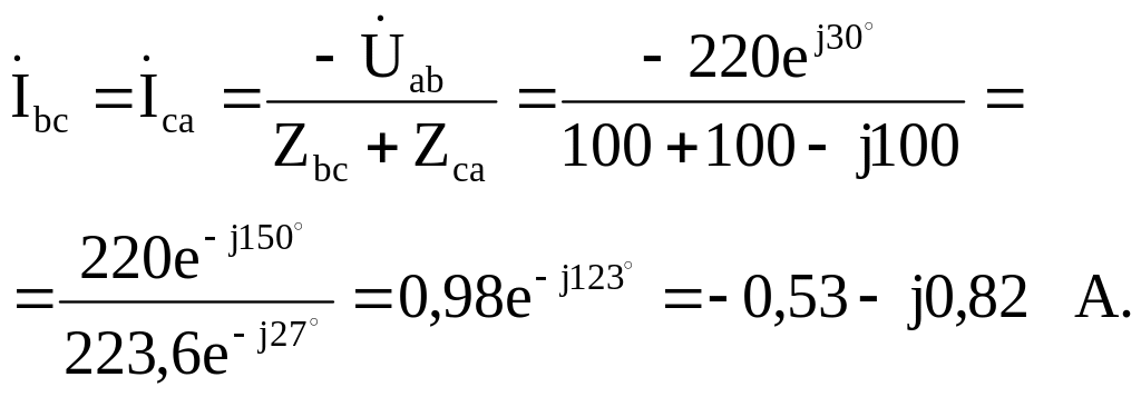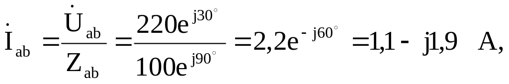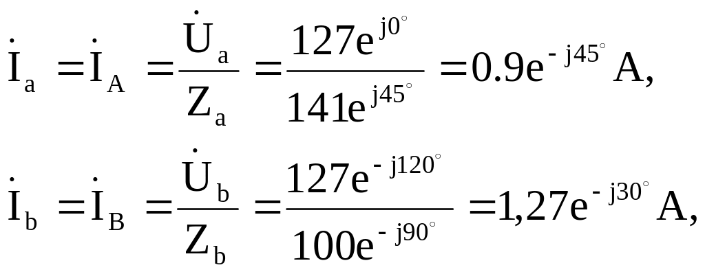 Фазные токи определяем с помощью закона Ома: