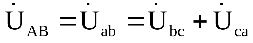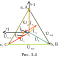 3.1.1. Фазные напряжения приемников, при соединении фаз нагрузки «треугольником», равны линейным напряжениям источника: