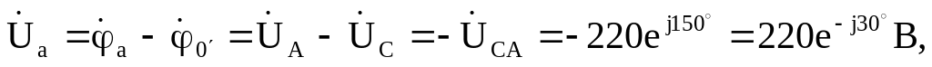 Фазные напряжения приемников: