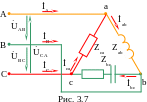 3.1. Пример полнофазной нагрузки, соединенной по схеме «треугольник» показан на рис. 3.7.