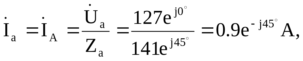 Фазные токи приемников равны линейным токам сети, комплексные величины которых определяем по закону Ома: