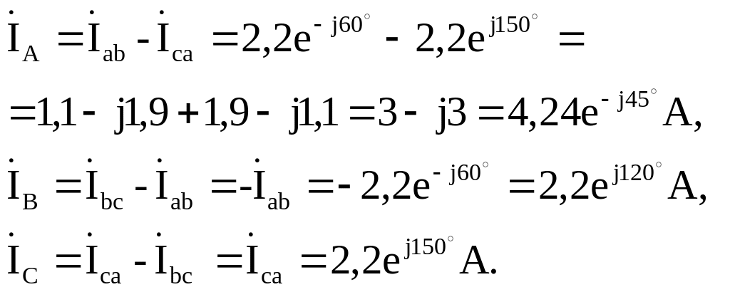 Линейные токи рассчитываем, воспользовавшись первым законом Кирхгофа: