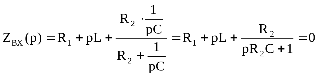 2.5. На рис. 4.12 представлена расчетная схема цепи для послекоммутационного режима (t>0), для которой записываем входное сопротивление цепи и приравниваем его к нулю.