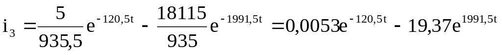 4. С помощью теоремы о разложении определяем зависимость тока i3 от времени.