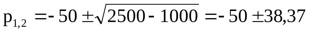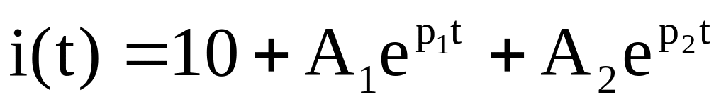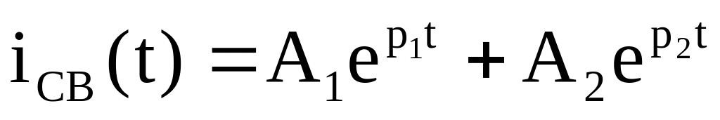 Корни разные по величине и представляют собой отрицательные действительные числа, следовательно, в цепи протекает апериодический процесс и свободная составляющая тока имеет вид: