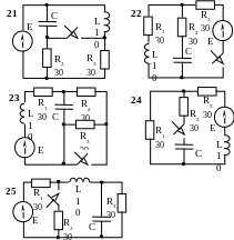 Относительно любых точек разрыва записываем входное сопротивление схемы цепи и приравниваем его к нулю: