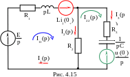 Внутренняя ЭДС uC(0+)/p позволяет учесть зарядку конденсатора до напряжения uC(0+) током i3 непосредственно до коммутации, поэтому она направлена навстречу току I3(p). На рис. 4.15 изображена операторная схема.