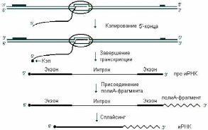Рис. 24. Схема процессинга мРНК (пояснение в тексте)