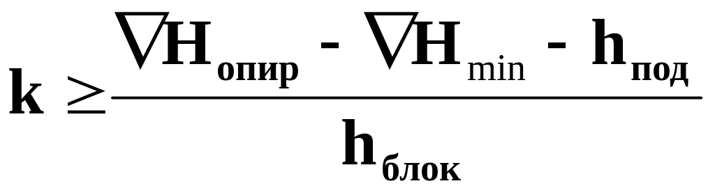 де Hопир.- відмітка з якої виконується розкладка блоків; hблок – висота фундаментного блока; hпод – висота фундаментної подушки; k – кількість блоків, яка забезпечує відмітку закладання підошви фундаменту не більшу ніж Hmin: