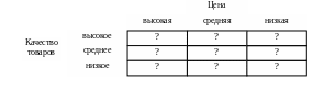 Распределите в нужном порядке следующие варианты стратегии маркетинга применительно к показателям цены и качества: