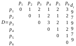 Упорядочим позиции pi в порядке невозрастания di {p1, p3, p4, p6, p2, p5}.
