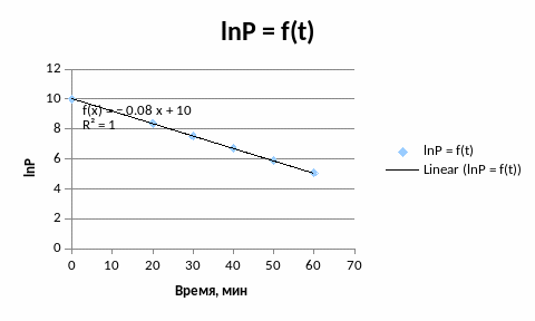 Допустим, что n =0 . Из таблицы кол. 2.1 Р(N2O5) = Р0(N2O5) - k, значит график в координатах Р(N2O5) = f() должна быть прямая линия.