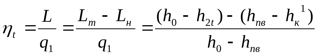 Термический КПД идеальной паротурбинной установки (рис. 2.1) можно выразить и через отношение полезной теоретической работы 1 кг пара в цикле L к теплоте, переданной 1 кг рабочей среды в котле (q1= h0 - hпв), следующим образом: