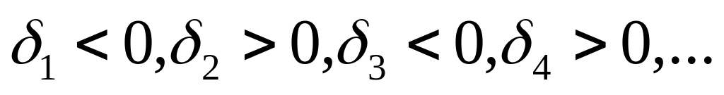 2) для того щоб квадратична форма була вiд’ємно визначеною, необхiдно i достатньо, щоб знаки кутових мiнорiв її матрицi чергувались таким чином: