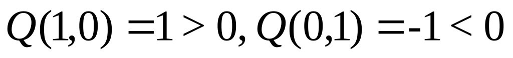 Квадратична форма називається знакозмiнною, якщо вона набуває як додатних, так i вiд’ємних значень.