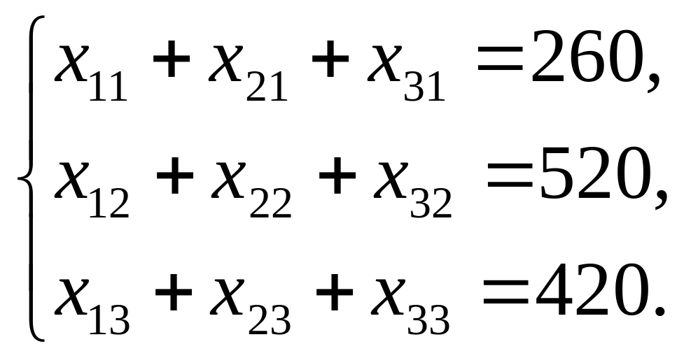 а оскільки, крім того, необхідно повністю задовольнити потреби пунктів призначення, то план перевезень повинен також задовольняти умови