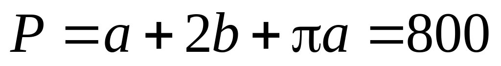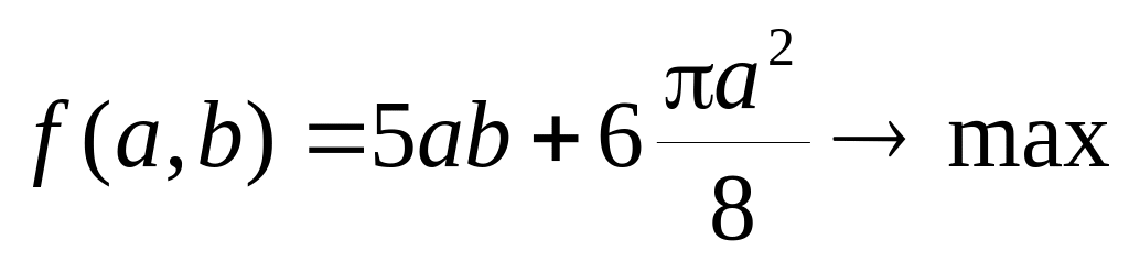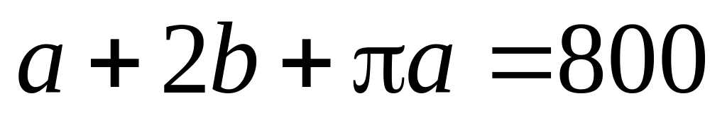 Побудуємо математичну модель задачі. Нехай a – ширина прямокутного поля, b – довжина прямокутного поля, r – радіус поля у формі півкруга, який дорівнює a/2.