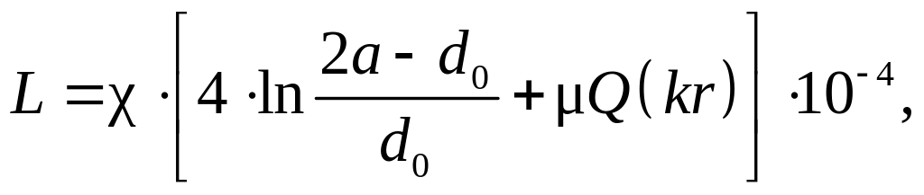 де L – індуктивність двопровідного кабельного кола, Гн/км;