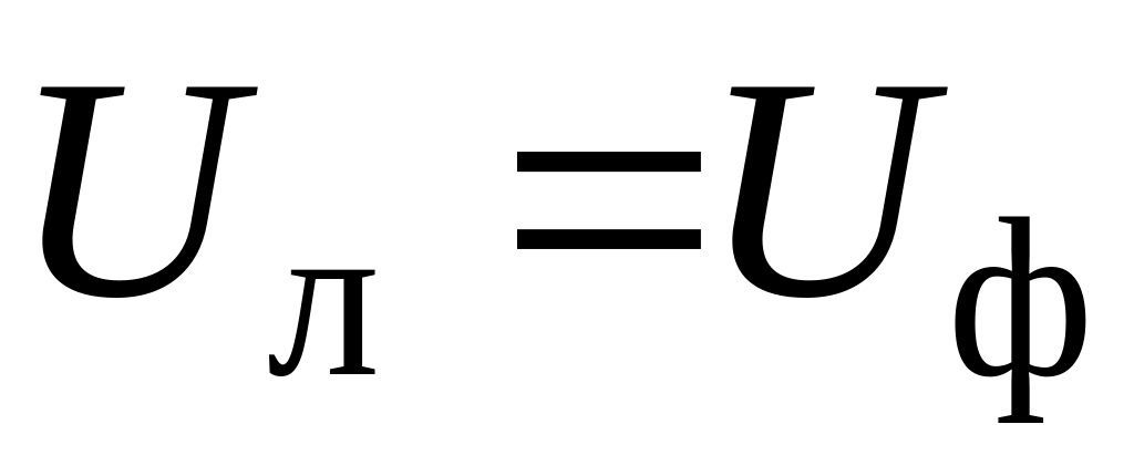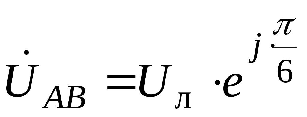 Между линейными и фазными напряжениями для симметричного источника существует зависимость:
