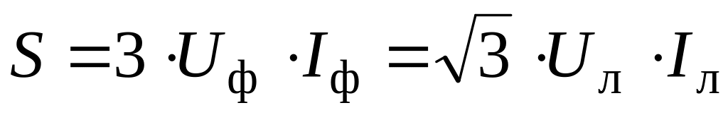 Полная мощность для каждой фазы определяется из треугольника мощностей, также как и для цепей однофазного тока.