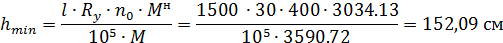 Минимальная высота балки, определенная из условия обеспечения требуемой жесткости: