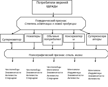 Совокупность усредненных оценок по всем изучаемым свойствам товара либо потребителя принято называть профилем потребителя для конкретного сегмента.