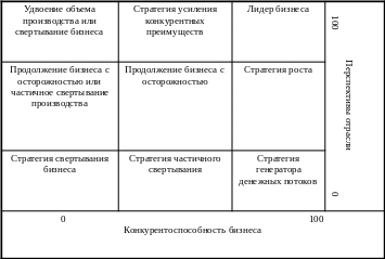 Позиция «стратегия свертывания бизнеса». Поскольку компания, занимающая эту позицию, теряет деньги, необходимо все усилия направить на то, чтобы избавиться от такого бизнеса.
