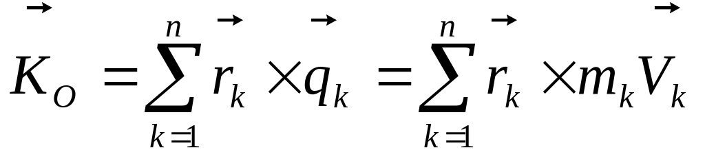 Кинетический момент системы, вычисленный относительно неподвижного центра О (его проекция на ось, проходящую через точку О), является векторной мерой, характеризующей вращение механической системы относительно неподвижного центра (оси).