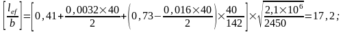 Наибольшее значение lef/b, при котором не требуется расчет на устойчивость сварных балок независимо от уровня приложения нагрузки при расчете участка балки между связями, определяется по формуле (37) [1]: