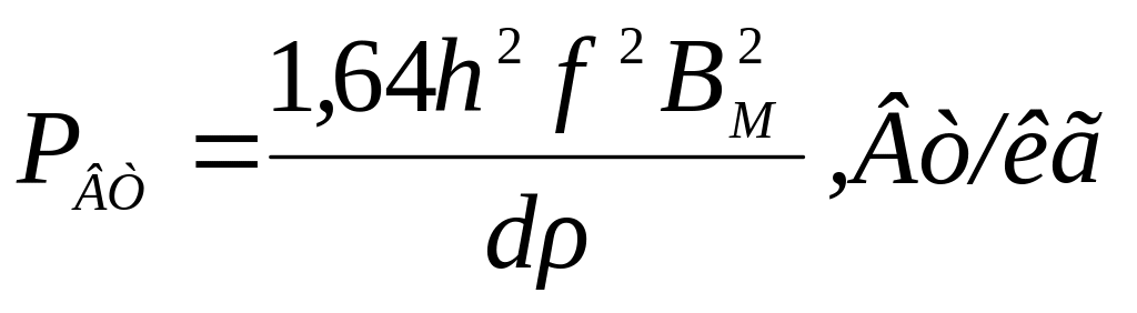 где ВМ - максимальная магнитная индукция в течение цикла, Тл; f- частота переменного тока, Гц; h -толщина листа, м; - удельное электрическое сопротивление, Ом-м; d - плотность материала, кг/м3.