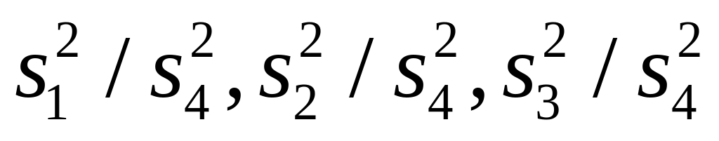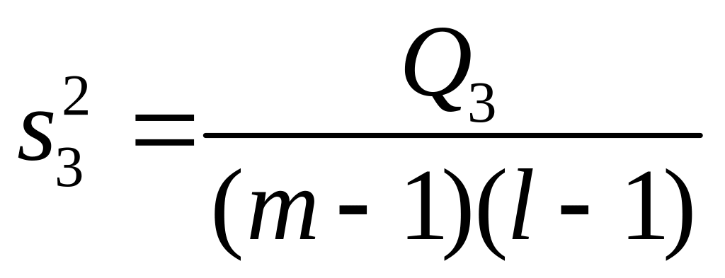 Средние квадраты находим делением полученных сумм на соответствующие им число степеней свободы m-1=2, l-1=1; (m-1)(l-1)=2; mln-ml=18-6=12; mln-1=18-1=17.