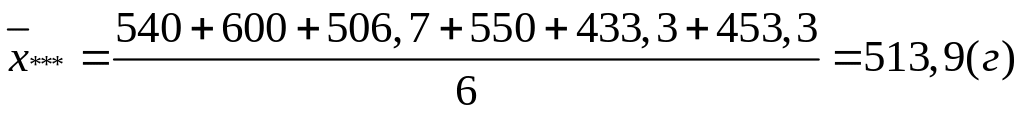 Решение. Имеем m=3, l=2, n=3. Определим (в г) средние значения привеса: