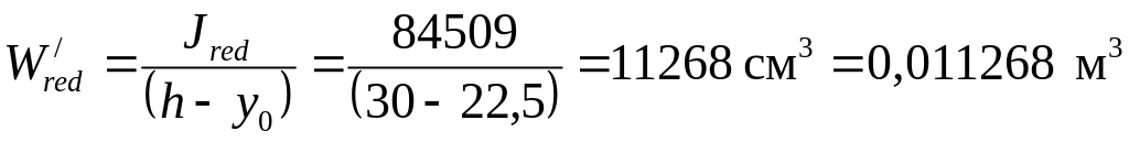 Wred = Jred / y0 = 84509/22,5 = 3759 см3 = 0,003756м3.