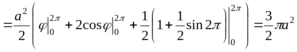 Пример. Вычислить площадь криволинейного сектора, ограниченного кардиоидой