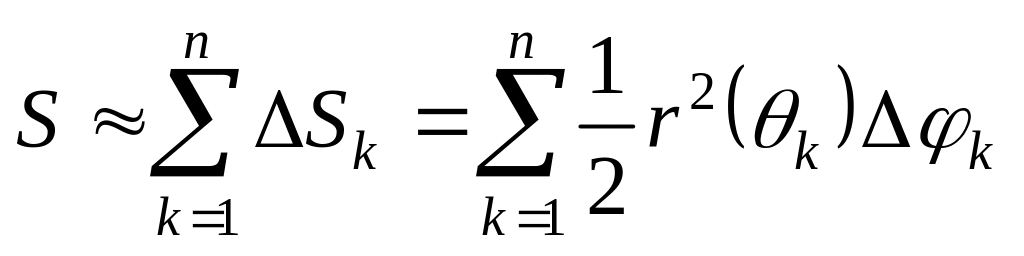 За площадь криволинейного сектора ОАВ примем площадь фигуры, состоящей из частичных круговых секторов: