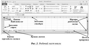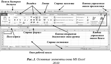 В окне Microsoft Excel 2010, как и в других программах MS Office 2010, используется ленточный интерфейс (рис. 1).