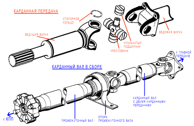 Карданная передача предназначена для передачи крутящего момента между валами, расположенными под углом друг к другу.