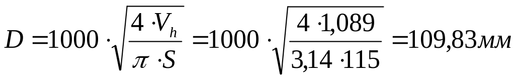Диаметр цилиндра. Так как ход поршня предварительно был принят S=115 мм, то