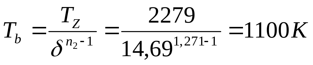Средний показатель адиабаты расширения k2 определяется по номограмме при заданном ε=18,5 для соответствующих значений α=1,38 и Tz=2279 К, а средний показатель политропы расширения n2 оценивается по величине среднего показателя адиабаты: