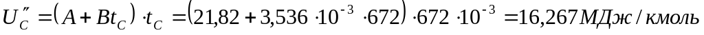 Теперь найдем значение внутренней энергии продуктов сгорания при температуре