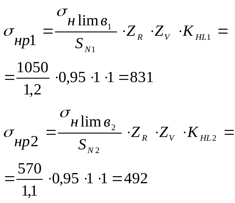 Sн1=1,2 – для шестерни с неоднородной структурой материала (закалка т.в.ч.); Sн2= 1,1 – для колеса с однородной структурой материала (улучшение) |