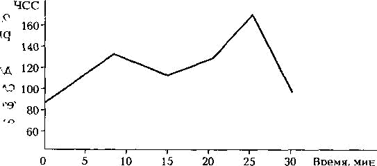 На горизонтальной оси откладывается время в минутах, на вер-тикальной — показатели пульса. Своеобразие физиологической кривой определяется характером занятия.