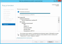 Дожидаемся завершения установки веб-сервера (может произойти перезагрузка сервера) и нажимаем «Закрыть» (Close) для завершения работы мастера.